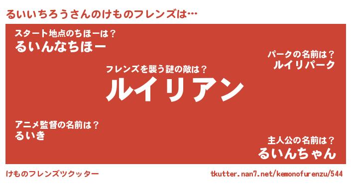 | 2回繰り返すあだ名 | 『ぼろぼろ』『るるいい』『るいるい』 |