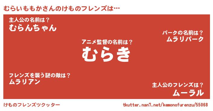| 女子向けラノベタイトル風あだ名 | 『むらいももかは平凡を望む』 |