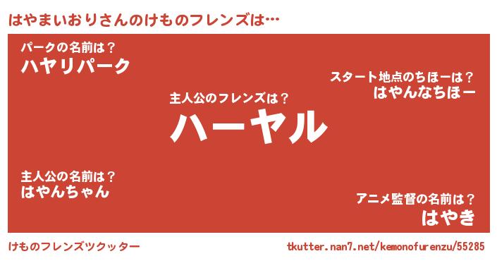 | 2回繰り返すあだ名 | 『かーかー』『めりめり』『ちろちろ』 |