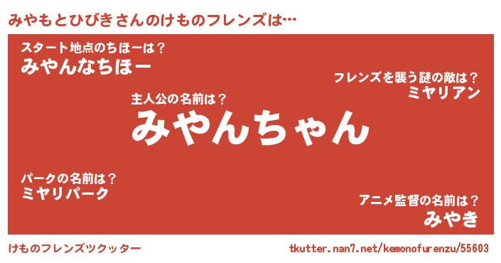 | 2回繰り返すあだ名 | 『みやみや』『みみやや』『わーわー』 |
