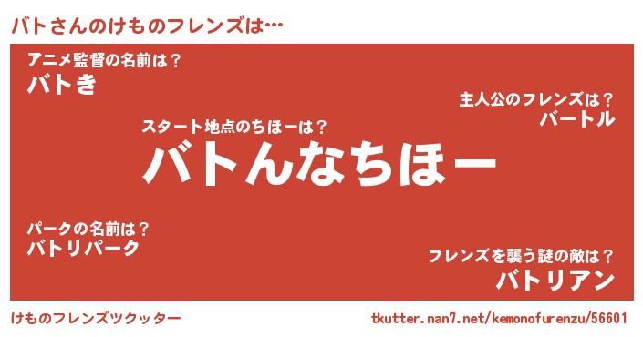 | 意味不明あだ名 | 『バトフォーエバー』『もやし科バト属』 |