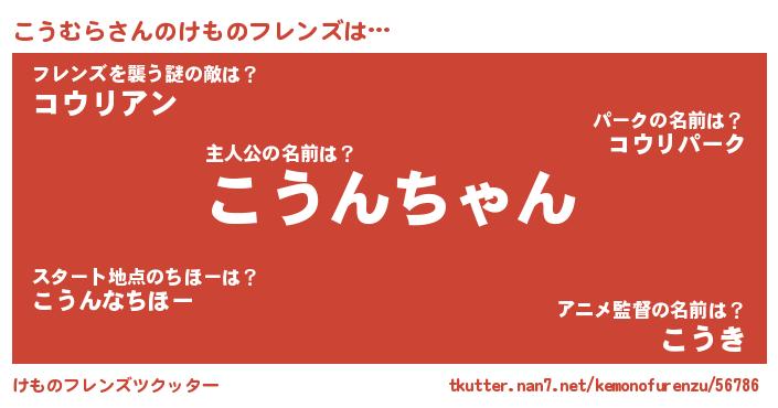 | 意味不明あだ名 | 『たけのこ科こうむら属』『自称こうむら』 |