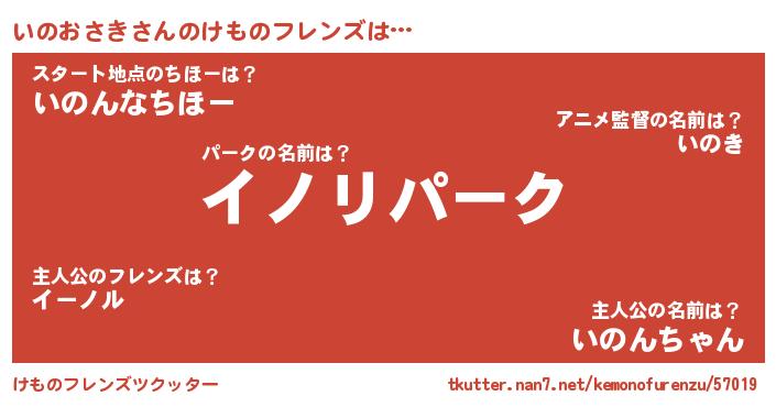 | 男性向けラノベタイトル風あだ名 | 『Re:いのおさきから始める異世界生活』 |