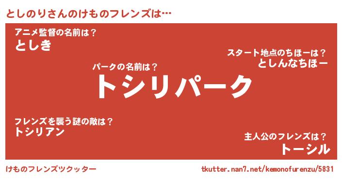 | 意味不明あだ名 | 『自称としのり』『永久保存としのり』 |