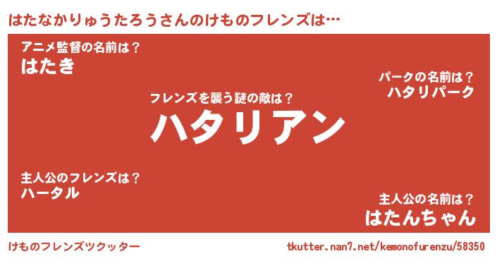 | 意味不明あだ名 | 『ヨモギ科はたなかりゅうたろう属』 |