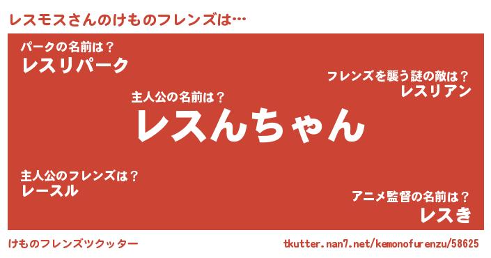 | 男性向けラノベタイトル風あだ名 | 『レスモスの憂鬱』『レスモススレイヤー』 |