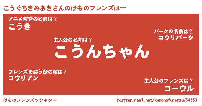| 2回繰り返すあだ名 | 『こうこう』『いらいら』『んごんご』 |