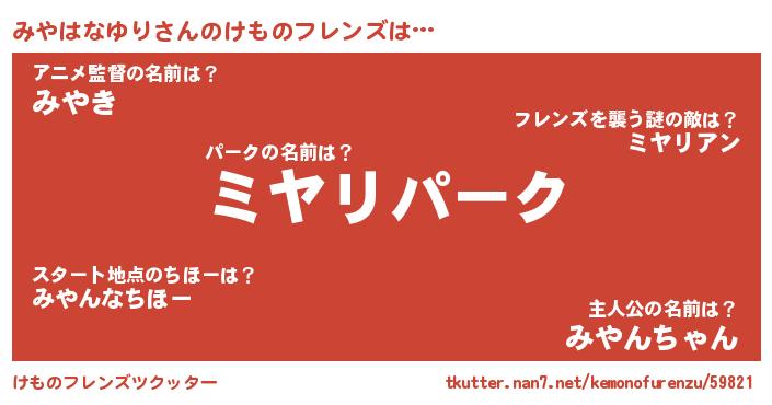 | ヒーロー風カッコイイあだ名 | 『最強戦士ミヤハナユリ』『黄金騎士ミヤ』 |