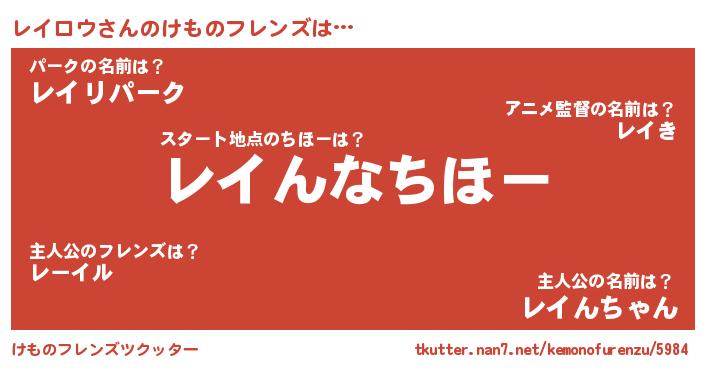 | 意味不明あだ名 | 『レイロウフォーエバー』『自称レイロウ』 |