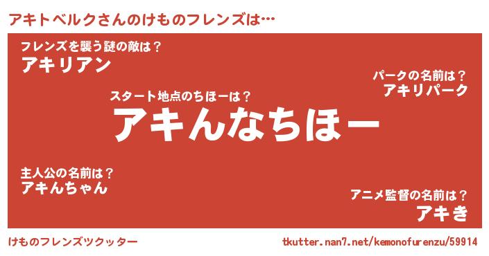 | 意味不明あだ名 | 『アキトベルクフォーエバー』 |