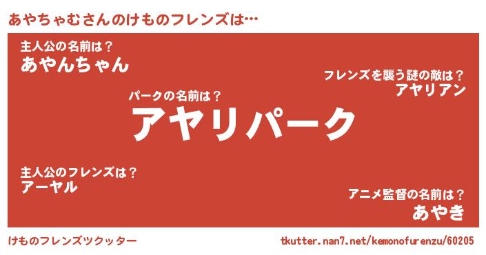 | ファンタジー風あだ名 | 『ゼアヤトゥ』『アヤフェル』 |
