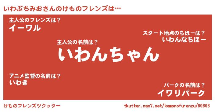 | ファンタジー風あだ名 | 『イワフェル』『イワディッシュ』 |