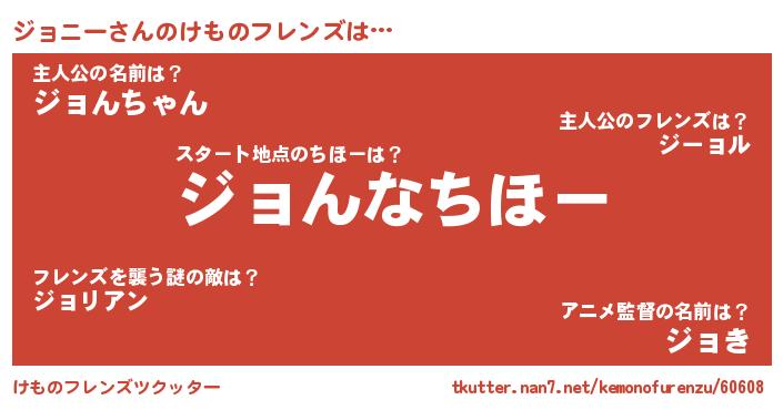 | 2回繰り返すあだ名 | 『ジジョョ』『わざわざ』『ジョジョ』 |