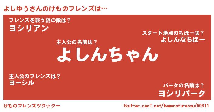 | 意味不明あだ名 | 『ペロリンよしゆう』『自称よしゆう』 |