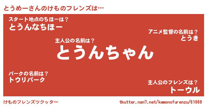 | 意味不明あだ名 | 『住所不定無職とうめー(71歳)』 |