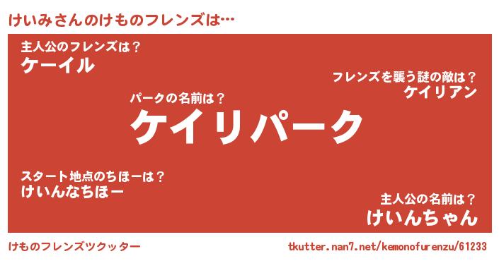 | 意味不明あだ名 | 『自称けいみ』『永久保存けいみ』 |