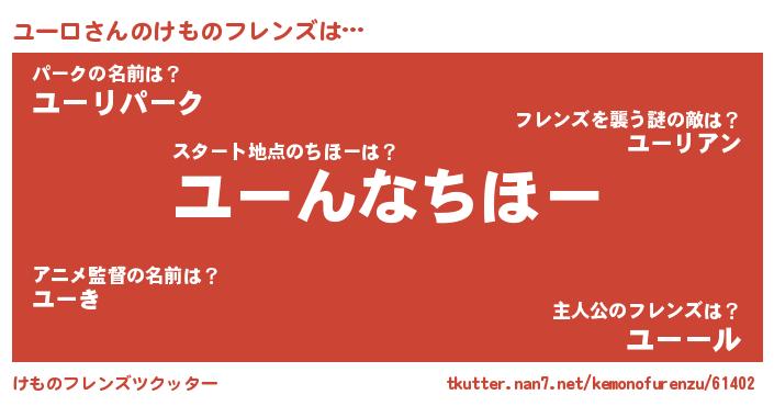 | 2回繰り返すあだ名 | 『ずきずき』『ユユーー』『まごまご』 |