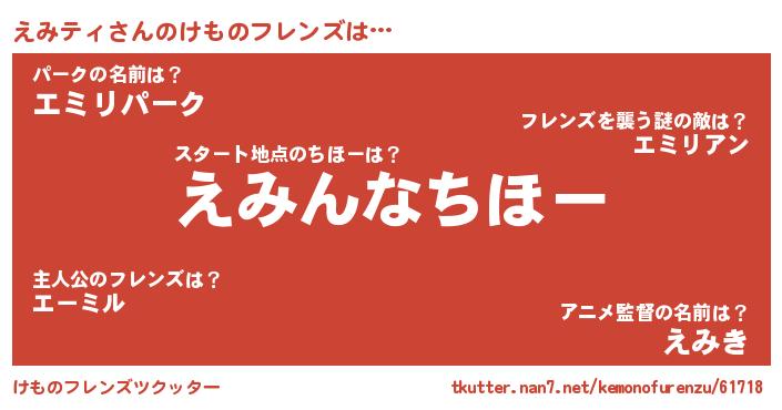 | 意味不明あだ名 | 『ヨモギ科えみティ属』『自称えみティ』 |