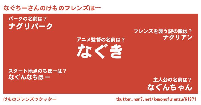 | ヒーロー風カッコイイあだ名 | 『幻影騎士ナグ』『最強戦士ナグチー』 |