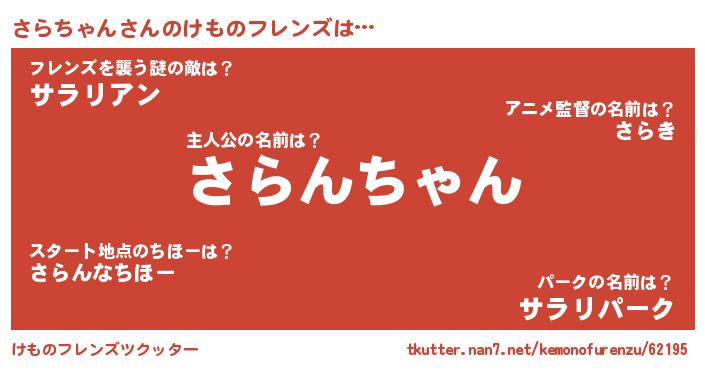 | 意味不明あだ名 | 『ヨモギ科さらちゃん属』 |