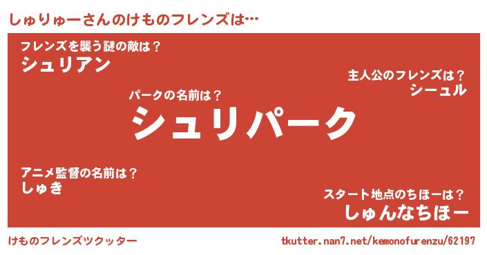 | 意味不明あだ名 | 『自称しゅりゅー』『永久保存しゅりゅー』 |