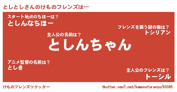 | 2回繰り返すあだ名 | 『としとし』『とぼとぼ』『ととしし』 |