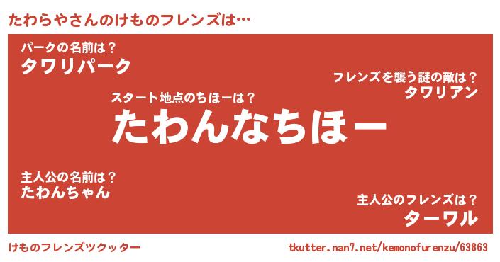 | ポケモン風あだ名 | 『タワゴンZ』『タワラダネ』 |