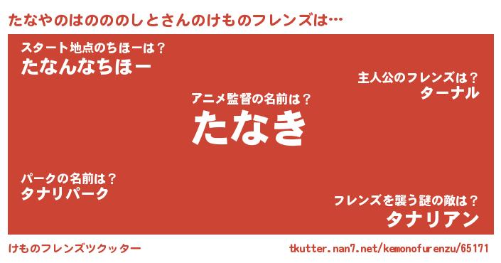 | ポケモン風あだ名 | 『ヒタナヤノハノノノシト』『タナキング』 |
