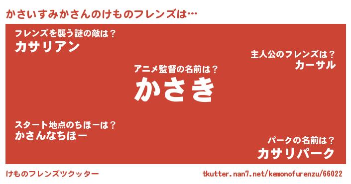 | ヒーロー風カッコイイあだ名 | 『天弓騎士カサ』『究極戦士カサイスミカ』 |