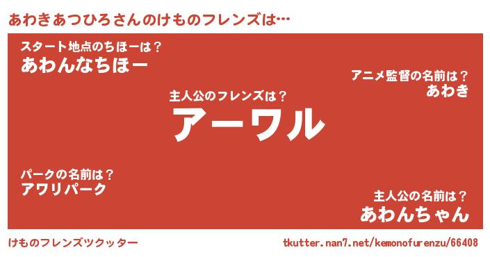 | ヒーロー風カッコイイあだ名 | 『ネオアワキアツヒロ』『幻影騎士アワ』 |