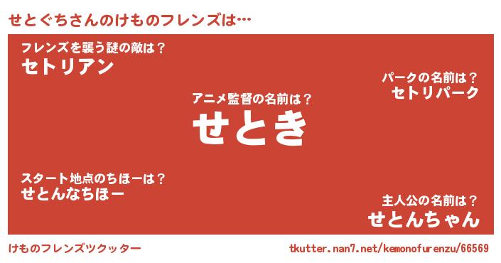 | 意味不明あだ名 | 『ヨモギ科せとぐち属』『自称せとぐち』 |