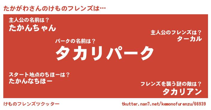 | 男性向けラノベタイトル風あだ名 | 『Re:たかがわから始める異世界生活』 |