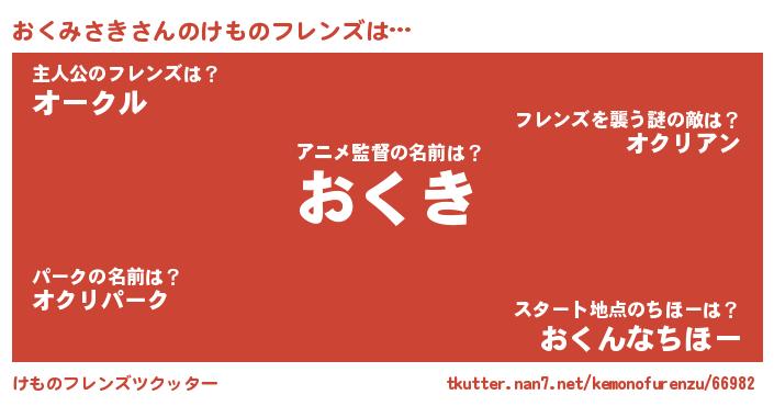 | 男性向けラノベタイトル風あだ名 | 『おくみさき~年齢イコール彼女いない歴の魔法使い~』 |