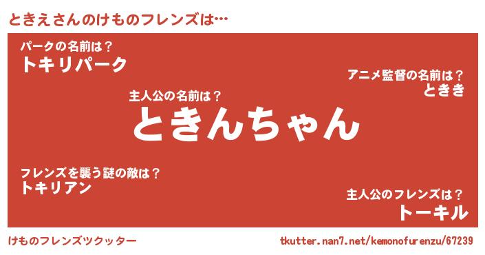 | 男性向けラノベタイトル風あだ名 | 『ときえの憂鬱』『トキエスレイヤー』 |
