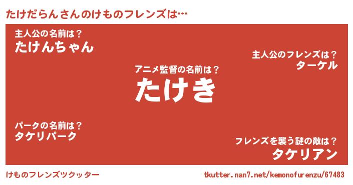 | 意味不明あだ名 | 『とにかく怪しいたけだらん』 |