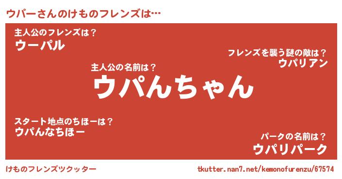 | ファンタジー風あだ名 | 『ウパフェル』『ウパディッシュ』 |