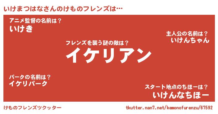 | 男性向けラノベタイトル風あだ名 | 『おまえをオタクにしてやるから、俺をいけまつはなにしてくれ! 』 |