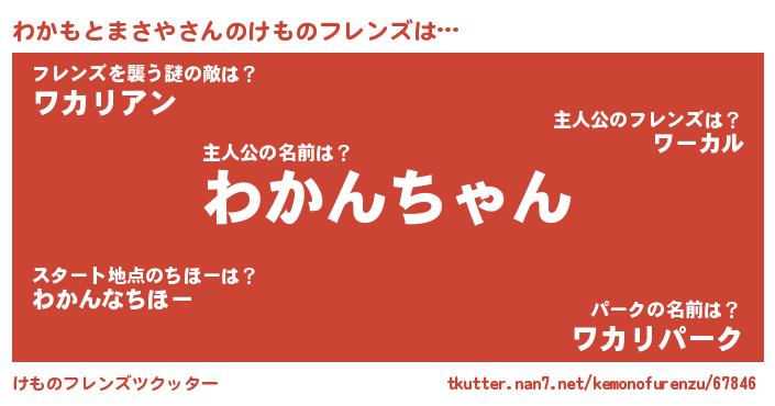 | ファンタジー風あだ名 | 『ワカフェル』『カークワカラー』 |