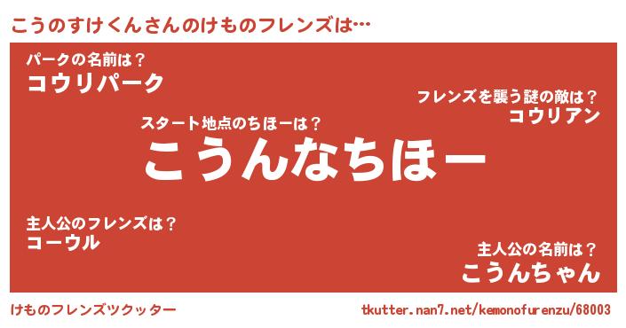 | 2回繰り返すあだ名 | 『ここうう』『もんもん』『こうこう』 |