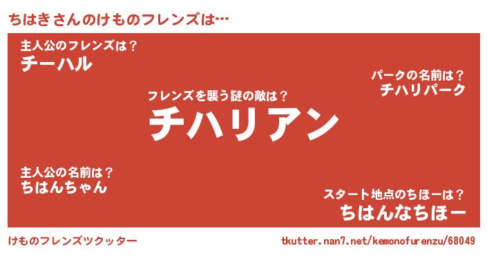 | 男性向けラノベタイトル風あだ名 | 『ちはきに滅ぼされるだけの簡単なお仕事です』 |