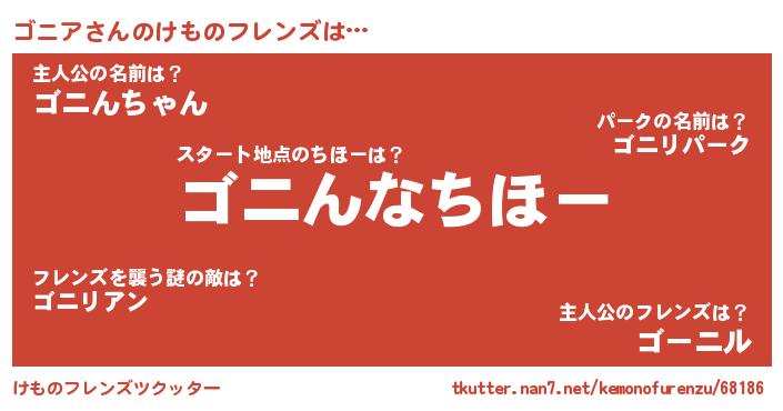 | 意味不明あだ名 | 『住所不定無職ゴニア(95歳)』 |