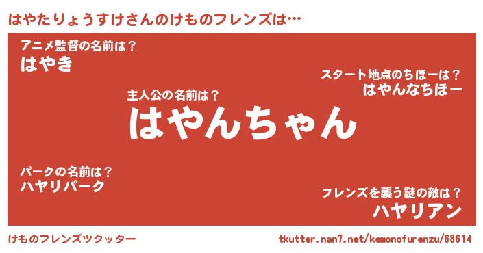 | ポケモン風あだ名 | 『ハヤチュウ』『ヒハヤタリョウスケ』 |