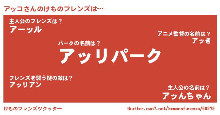 | 意味不明あだ名 | 『自称アッコ』『永久保存アッコ』 |