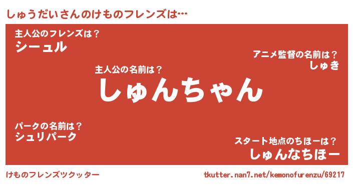 | ヘコむあだ名 | 『しゅっふぃ~』『しゅうだい(笑)』 |