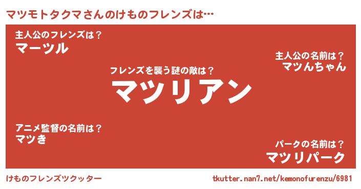 | 意味不明あだ名 | 『めかぶ科マツモトタクマ属』 |