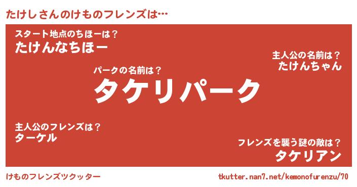 | ヒーロー風カッコイイあだ名 | 『サイバー戦士タケシ』『仮面タケダー』 |