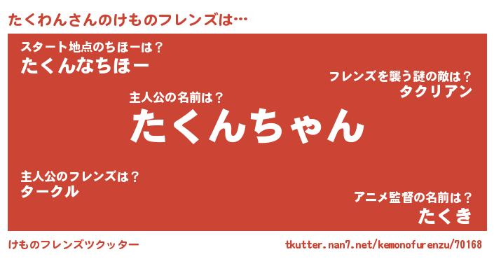 | 2回繰り返すあだ名 | 『たくたく』『たたくく』『おろおろ』 |
