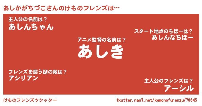 | ポケモン風あだ名 | 『ヒアシカガチヅコ』『アシキング』 |