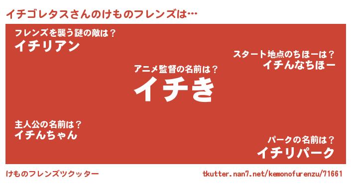 | ヒーロー風カッコイイあだ名 | 『魔戒騎士イチ』『最強戦士イチゴレタス』 |
