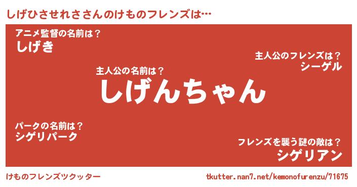 | 意味不明あだ名 | 『住所不定無職しげひさせれさ(7歳)』 |